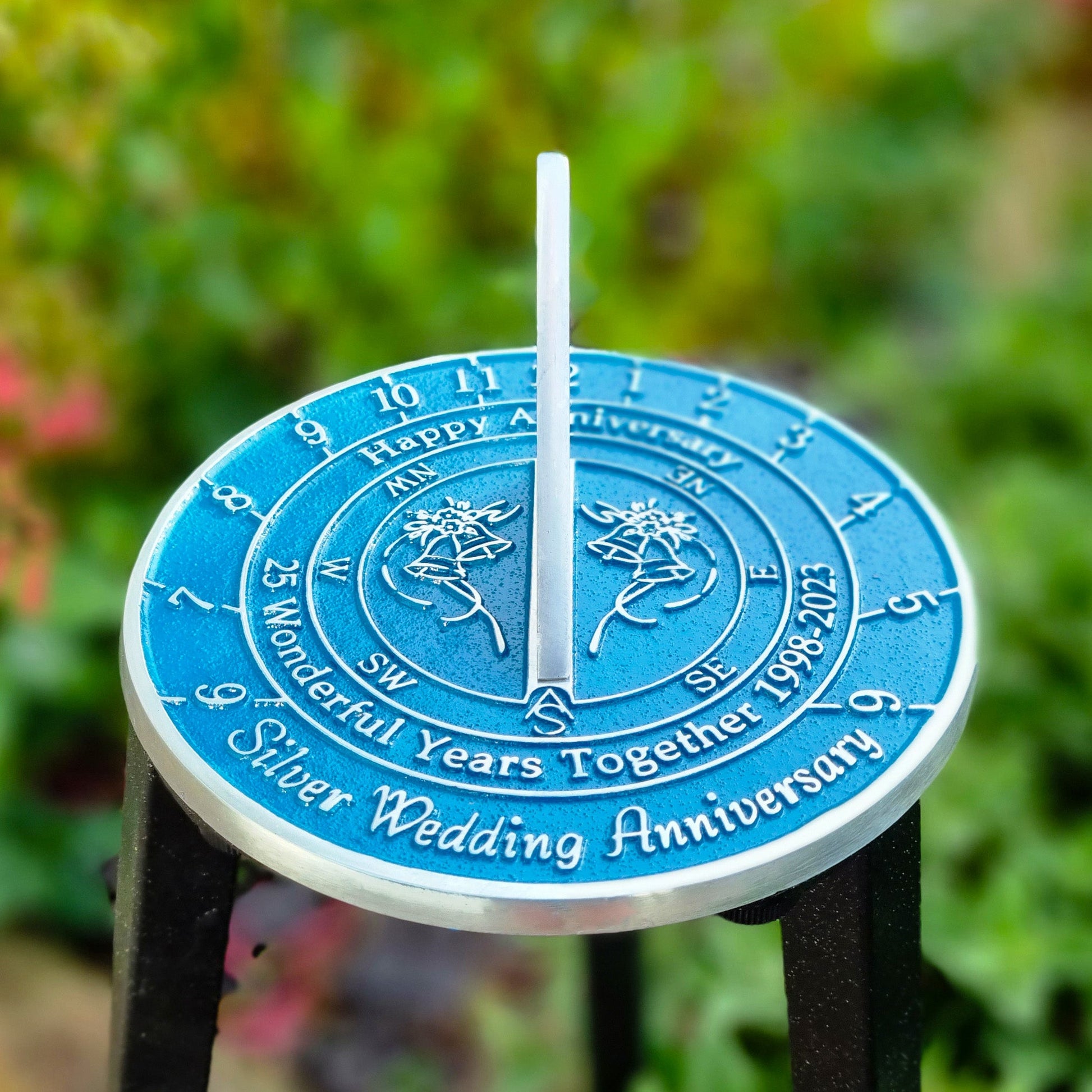 Celebrate twenty-five years of love with The Metal Foundry's 25th Anniversary Sundial. Commemorate a quarter-century together with this Silver 25th Wedding Anniversary Sundial gift.